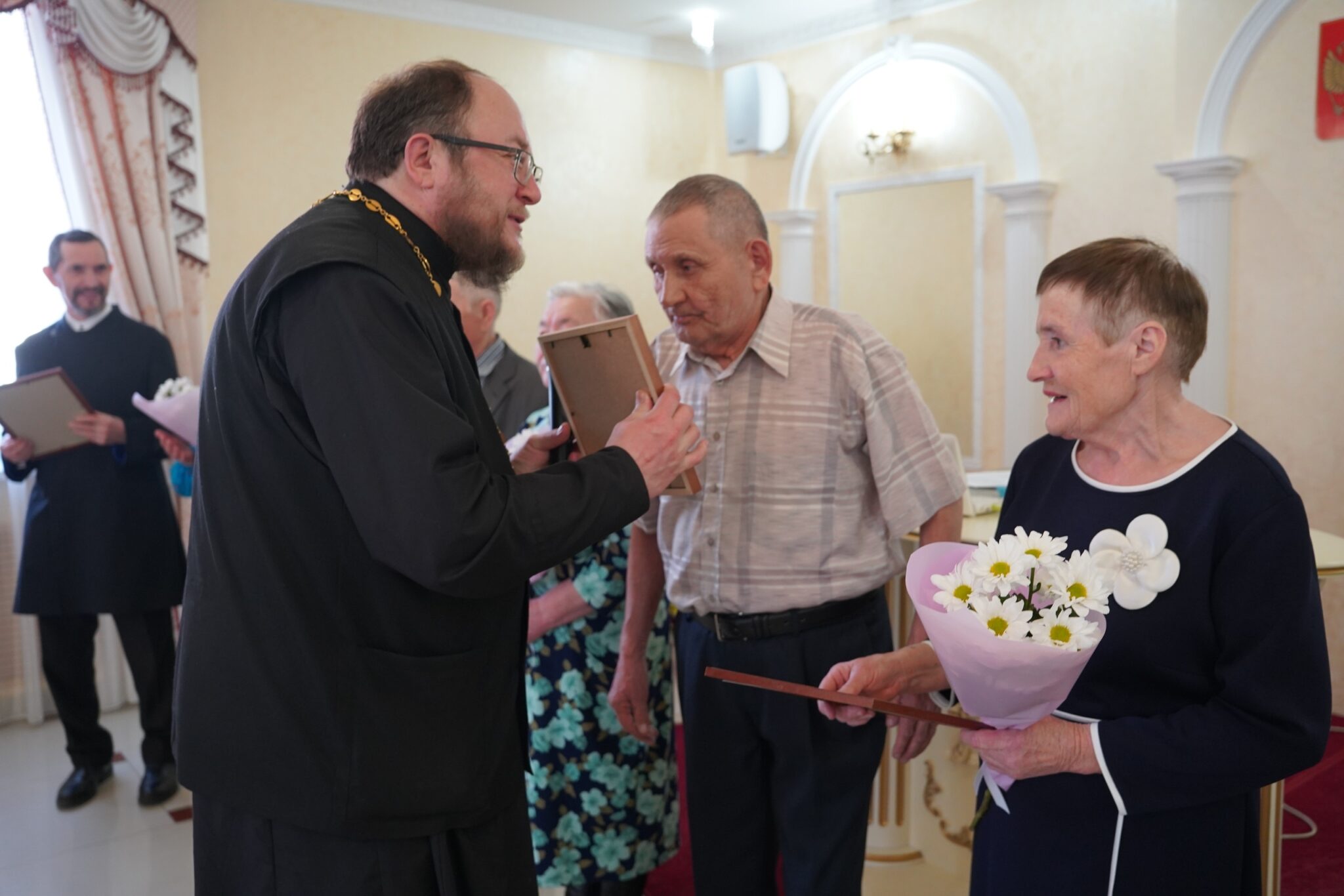 В своём обращении отец Сергий подчеркнул непреходящую ценность семейного очага, основанного на любви, верности и взаимном уважении. Он отметил, что пример золотых юбиляров — это не только гордость для их родных и близких, но и важный ориентир для молодого поколения, которое только начинает свой путь в семейной жизни. Священник благословил супружеские пары и пожелал им крепкого здоровья, душевного мира и дальнейших совместных лет, наполненных радостью и благодатью.