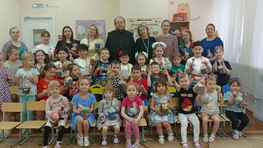 Настоящим подарком для детей стало выступление настоятеля храма в честь иконы Божией Матери, именуемой «Неупиваемая Чаша», иерея Сергея Лобанова. Священнослужитель обратился к ребятам с тёплыми словами поздравления, пожелал им здоровья, счастья и благополучия, а также напомнил о важности доброты и взаимопомощи. В завершение своего выступления отец Сергей вручил каждому ребёнку кулич и шоколадное угощение. Глаза малышей засияли от радости, а благодарные улыбки стали лучшей наградой для гостя.